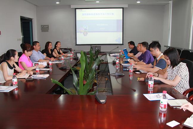 深圳國際科技商務平臺負責人朱志偉主任首先向我協會一行表示了熱烈的歡迎,國際平臺謝照杰副主任首先向我協會介紹了深圳國際國際科技商務平臺的成立背景、發展現狀和下一步的發展規劃,重點介紹了國際平臺成立九年來在“引進來”、“走出去”工作中的成果及案例。在座談中,雙方探討了就以后如何開展各方面合作等方面的問題,均希望今后能加強在展會、論壇、會議等的國際交流與合作,相互學習,爭取使我協會在“國際化”的工作中能更上一個新的臺階。