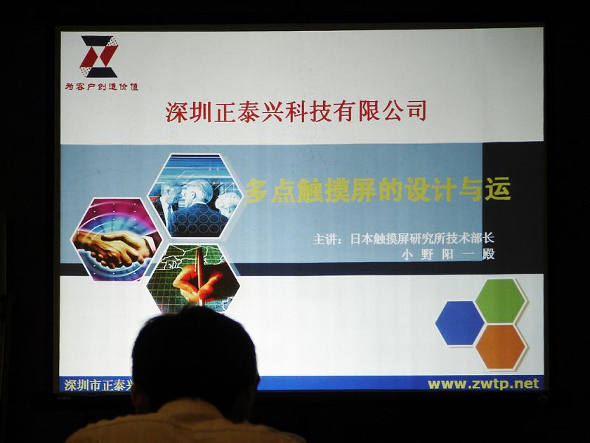4月1日下午1點(diǎn)30分,由深圳市正泰興科技有限公司主辦,日本東洋包材株式會(huì)社和韓國(guó)MAX FILM株式會(huì)社共同協(xié)辦的“多點(diǎn)觸摸屏的設(shè)計(jì)與運(yùn)用——最新的多點(diǎn)式觸摸技術(shù)及行業(yè)發(fā)展方向”研討會(huì)在深圳市寶安恒豐海悅酒店V7會(huì)議廳隆重舉行,由深圳市正泰興科技有限公司總經(jīng)理陳浩先生致開幕詞。