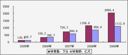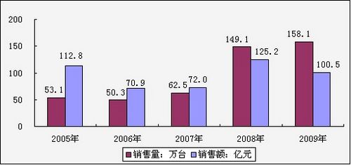 圖1 2005-2009年中國液晶電視銷售量與銷售額