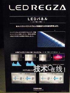 東芝于2010年4月14日發布了配備LED背照燈的液晶電視“LED REGZA”(圖1)。包括“Z1”、“RE1”和“HE1”3個系列的26種機型,畫面尺寸為從19英寸到55英寸。東芝Visual Products公司影像營銷業務部業務部長村澤壓司充滿信心地表示,“我們正計劃2010年度使(本公司)在日本國內銷售的液晶電視的50%左右實現‘LED化’。2012年度底將停止在日本國內銷售使用CCFL(冷陰極熒光管)的液晶電視”。