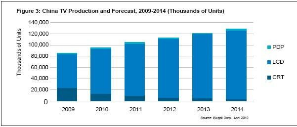 據(jù)iSuppli公司,中國電視市場已經(jīng)是全球舞臺上的主角,預計2010年再度有強勁表現(xiàn),整體電視產(chǎn)量上升,同時對于液晶電視的需求大增。