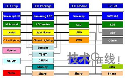 2010年各電視機和液晶面板廠商都在積極計劃生產LED背照燈液晶電視,如果將生產計劃單純累加會突破5000萬臺。LED供應能力和品牌銷售力是各大廠商能否完成計劃的關鍵,但所需條件還不止這些。構筑成本和供應兩方面均符合要求的從LED芯片到背照燈的復雜供應鏈也是不可或缺的。