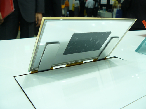 展示品為有源矩陣型。沒(méi)有公開(kāi)亮度、對(duì)比度以及色彩表現(xiàn)范圍等性能參數(shù)。住友化學(xué)此前一直在開(kāi)發(fā)電視機(jī)用OLED面板的量產(chǎn)技術(shù),此次展出的就是其成果。