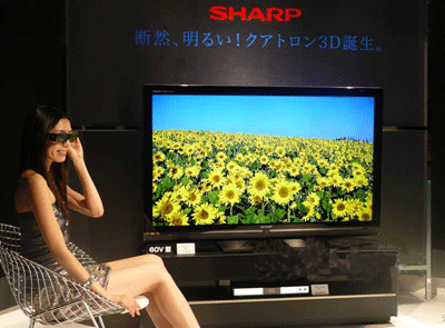 夏普于2010年5月31日發布了支持三維(3D)影像顯示的液晶電視“AQUOS Quattron 3D LV3”系列四款機型。將與支持3D影像顯示的兩款藍光(BD)錄像機“AQUOS Blu ray”一起,于2010年7月30日上市。就日本國內液晶電視“AQUOS”中3D機型所占的銷售目標,該公司副社長執行董事、AV系統業務主管松本雅史表示“2010年度為5~10%,2011年度達到50%”。