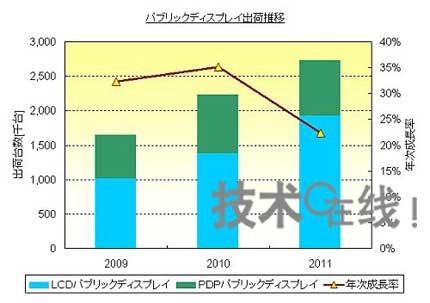公共顯示器以數字標牌(電子看板)為代表。在機場、車站、購物中心以及商業區等公共場所顯示和發送信息的公共顯示器市場,作為繼筆記本電腦、顯示器和電視機之后的第四個大屏幕FPD市場,今后有望出現增長。