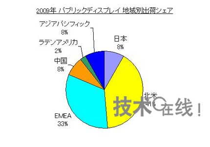 圖2:不同地區的公共顯示器供貨份額(2009年)