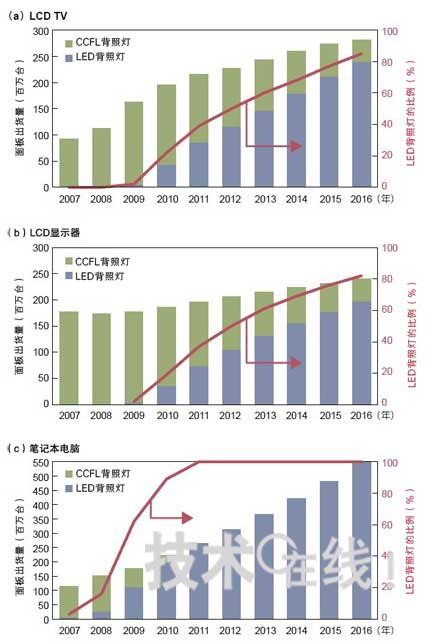 以電視為中心的大型液晶面板正逐步采用LED背照燈。為了LED背照燈采用的進一步普及,電視機與面板的制造商開始謀求LED背照燈成本的降低和芯片的穩定供應。本文介紹由專家基于最新數據,對今后的需求作出的預測。