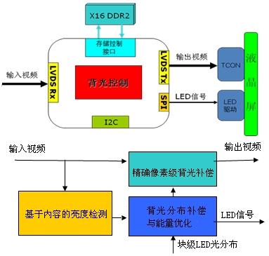 易維視公司的動態背光液晶顯示控制芯片的技術方案流程圖: