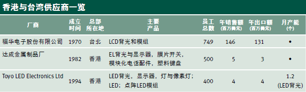 對于中小型應用,廠商的幾乎所有材料都購自珠江三角洲地區和夏門的供應商。由于預計原材料供應與成本將保持穩定,這些背光的價格將保持在0.30-0.40美元。