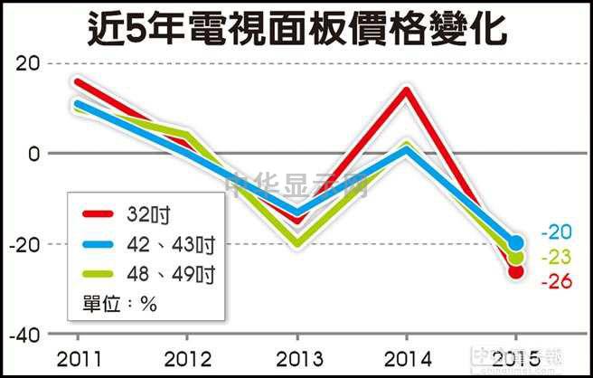 下半年大陸面板廠也開始積極拓展不同的產品線,供貨量也都明顯增加IHS預估,40寸、42寸、43寸面板今年價格跌幅高達22~23%,更大尺寸如48寸、49寸面板跌幅也有20%,至于55寸以上的面板價格跌幅也都在21%以上。