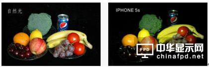 對比圖4在自然光和某手機閃光燈下的果蔬顏色,該閃光燈的一般顯指Ra不錯,為77.25,但R9為-9.26,這與閃光燈下果蔬紅色表現不佳(橙子不夠橙,西紅柿偏暗紅色)的現象是對應的。