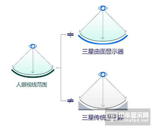 曲面顯示器也是一樣的道理,曲面屏幕的設計更貼合人眼看東西的習慣,讓畫面不因和人眼的視距不等而造成失真,從而帶來更直觀的視覺包圍感。