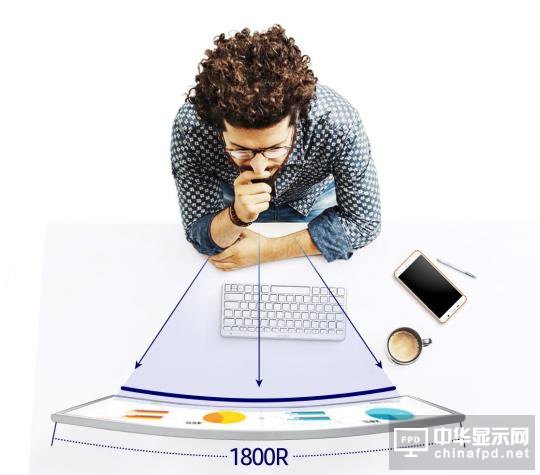 當然,曲率也不是越小越好,畢竟眼睛不像耳朵長在兩邊,太小的曲率壓根就沒法正常觀看。在三星新一代曲面顯示器中,采用1800R的曲率,不僅彎曲明顯,而且也貼合人眼習慣,營造出身臨其境的沉浸感。