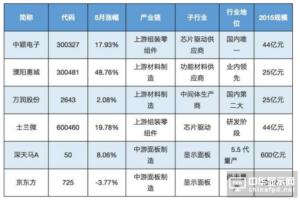我們可以看到,在5月的漲幅中,上游材料商濮陽惠城漲幅最大,萬潤股份4月已錄得52.77%漲幅,本月漲幅較少。