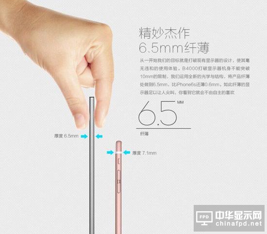 而B4000最終極的必殺技在于其超薄的機(jī)身控制,它通過創(chuàng)新的光學(xué)結(jié)構(gòu)方案整合,開發(fā)出業(yè)界領(lǐng)先的顯示器背光方案,一舉打破一般顯示器機(jī)身不能突破10mm機(jī)身厚度的限制。液晶的最薄處僅為6.5mm,比蘋果iPhone6S還要薄0.6mm,這可是一個讓人驚訝的數(shù)字,完全有資格再一次挑戰(zhàn)顯示器的世界纖薄度記錄。從側(cè)向欣賞,彷如刀鋒般極具視覺殺傷力,高調(diào)地薄出新記錄,有型有款,如此匠心獨(dú)運(yùn),讓人愛不釋手。