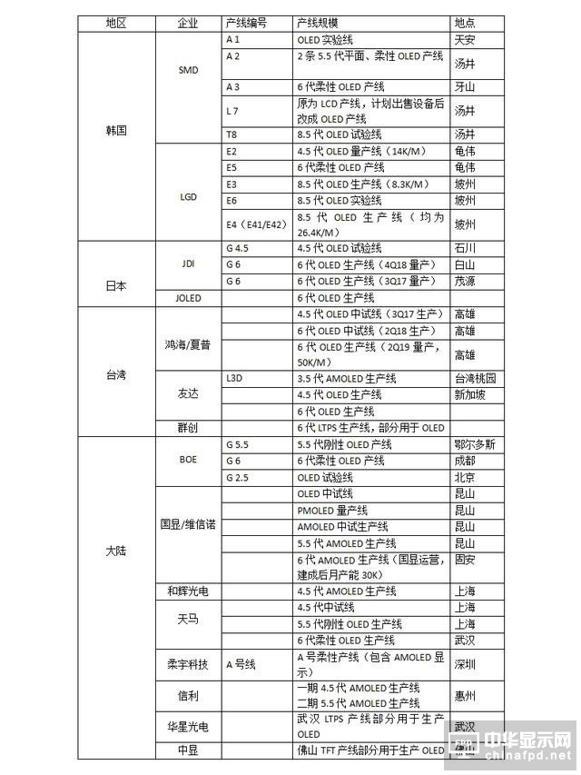 韓國方面,主要以SMD及LGD為主,前者主要推中小尺寸的OLED面板,應(yīng)用于智能手機(jī)及可穿戴設(shè)備等移動(dòng)終端,而LGD則主要推大尺寸的OLED面板,主要應(yīng)用在智能TV上。與SMD類似,國內(nèi)面板商同樣推出的都是中小尺寸的OLED面板!
