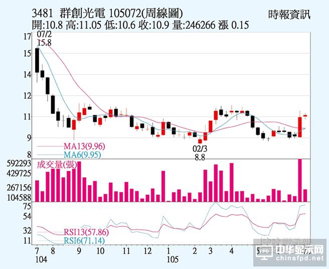 面板雙虎近期在3大法人聯(lián)手敲進(jìn)下大漲,群創(chuàng)上周維持高檔強(qiáng)勢(shì)整理,終場(chǎng)收在10.9元。從技術(shù)面看,KD交叉向上,MACD柱體正值擴(kuò)張,指標(biāo)偏多,短線股價(jià)仍有機(jī)會(huì)持續(xù)上攻。