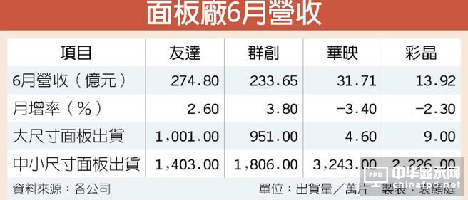 面板廠營收全數(shù)出爐,由于價(jià)量同步增溫,群創(chuàng)、友達(dá)、彩晶第2季營收都有兩位數(shù)的成長幅度,虧損可望大大縮小。群創(chuàng)走出地震陰霾,第2季營收季增18.4%表現(xiàn)最亮眼,友達(dá)營收季增12.6%,彩晶則是成長11.9%,華映小增1.9%。