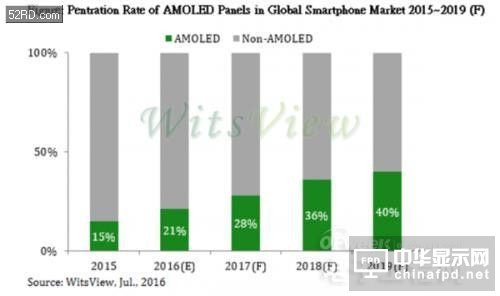 WitsView預(yù)估2016年AMOLED智慧型手機(jī)滲透率將突破21%。