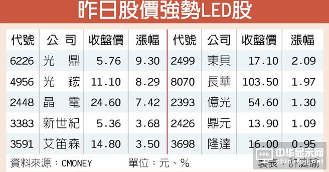 臺股資金輪動快速,LED族群昨(20)日在報價回溫題材的帶動下,億光(2393)、晶電(2448),東貝(2499)等指標股上漲逾1%,成為昨日盤面強勢重心。