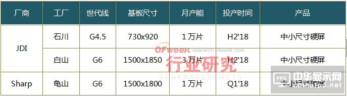 JDI成立于2012年,由日本政府牽頭,整合索尼、東芝和日立三家公司的顯示部門合并而來。關于OLED業務,JDI早在2014年就已經在石川工廠設立了小型OLED試制生產線進行OLED量產技術研發,而且也陸續推出了一些OLED面板試制品,使用的是白色OLED+CF的技術方案。JDI主要為蘋果iPhone供貨,且占其銷量的50%以上。自從蘋果決定在iPhone上改用OLED面板之后,為了保住蘋果訂單,JDI多次追加投資額。5月份在茂源工廠計劃投資500億日元設置OLED生產線;6月份追加約30億日圓投資,擴大石川工廠的OLED實驗工廠;8月份又投下200億日元用于石川工廠OLED面板試作產線的興建,該試作線計劃在 2016年8月啟用。