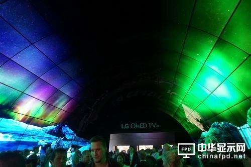 本屆IFA展LG在展位布置上更是顯得別出心裁,用許多面OLED電視屏幕拼接成了類似海底世界隧道一樣的入口,人們走在其中瞬間便會被五彩斑斕的畫面所震撼,更為代表著當今最尖端OLED圖像技術所傾倒。