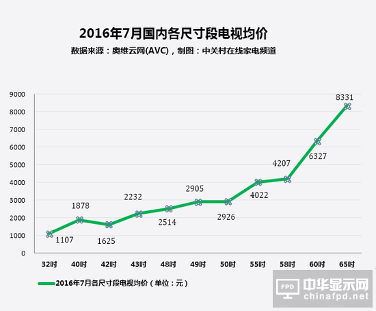 對于電視來說,很多消費者對價格都是十分關注的。各尺寸段電視均價分別如下,32英寸電視均價1107元,40英寸電視均價1878元,42英寸電視均價1625元,43英寸電視均價2232元,48英寸電視均價2514元,49英寸電視均價2905元,50英寸電視均價2926元,55英寸電視均價4022元,58英寸電視均價4207元,60英寸電視均價6327元,65英寸電視均價8331元。