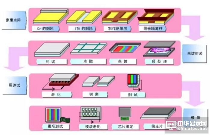 當然了,具體到整塊面板,結構也就復雜很多,包括次像素間需要隔離柱、絕緣層之類。AMOLED則還有TFT backplane這種控制每個像素開關的東西。