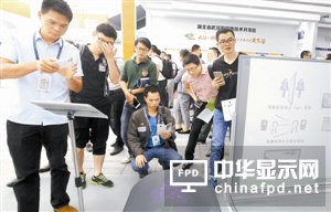現場展示全息薄膜雙面透明顯示器吸引市民眼球。