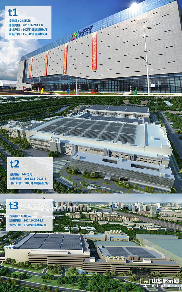 華星光電已投產的顯示面板制造項目(t1,t2及t3)
