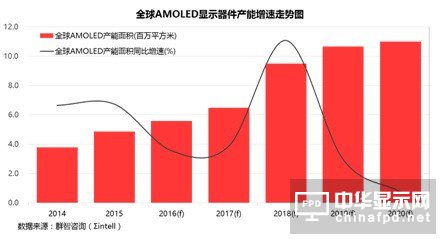 2014-2020年全球AMOLED產(chǎn)能面積走勢(shì)