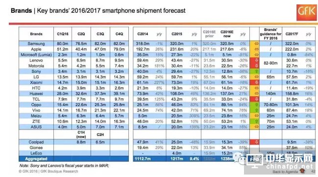 2.成長趨緩的品牌(0%~3%)包括蘋果、聯想+Moto、LG、小米
