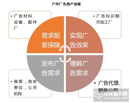 而戶外廣告行業(yè),特指以具體形式展示廣告或告示、宣傳品的載體,主要包含LED顯示屏、LED幕墻、門頭招牌、廣告字、戶外(室內(nèi))燈箱、大型立牌,甚至噴繪印刷品等生產(chǎn)制作環(huán)節(jié),以及發(fā)布公益公告、商業(yè)廣告、標識標牌、指示導向等廣告內(nèi)容。