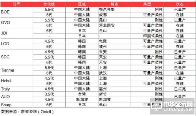 表1:截至2016年,全球AMOLED顯示器件產線投資建設情況