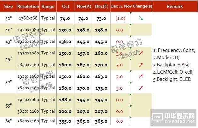 4、55英寸方面,11月份價格上漲7美金,預計12月份價格持平。