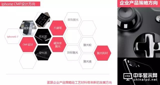 CMF設計是指顏色(color),材料(material),工藝設計研究(finish)。