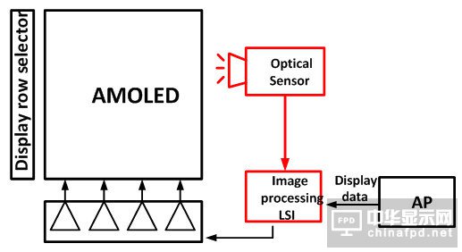 圖中Column readout作用是監測 TFT I-V 特性變化和均勻性,監測OLED均勻性和老化;Image processing LSI作用是根據監測結果計算補償量,并將補償量和初始數據整合輸出給Data Driver