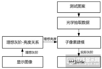 其補償過程是用CCD對整個面板拍照,得到每個像素在幾個特征灰階下的亮度值,然后對子像素進行建模,得到每個像素的灰階-亮度的特性曲線。在對某一顯示圖像進行補償時,我們根據輸入灰階相對應的理想亮度,從該子像素的灰階-亮度特征曲線中可以反推出為了使該子像素達到相同的亮度,所對應的補償灰階,對所有的子像素都進行類似操作,我們就可以得到一個所謂的補償圖像,使用這個補償圖像驅動背板,就可以達到我們想要的理想亮度值。這一技術的難點是如何用CCD準確抓到每個像素的正確亮度并建立正確的模型,要通過算法克服子像素準確定位、摩爾紋等問題。因為光學補償要借助專業化的設備,只能在出廠前做初始化校準,無法在產品使用中進行補償,因此只能補償顯示非均勻性,無法補償使用中產生的殘像。