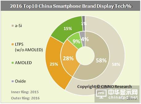 根據(jù)CINNO Research全球季度手機(jī)面板出貨量監(jiān)測統(tǒng)計(jì)分析報(bào)告顯示,2016年全球LTPS/IGZO手機(jī)面板出貨量達(dá)到6.1億片,相比2015年增長13.7%,中國前十大品牌貢獻(xiàn)了33%的份額。