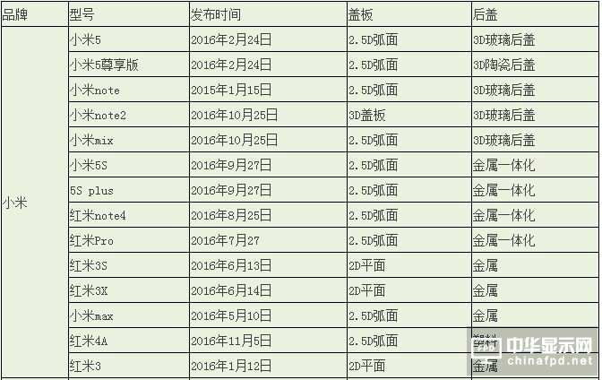 從前面的玻璃蓋板來看,2.5D屏幕占到了10款,占比72%,小米note2采用的前后3D玻璃蓋板,用材大膽前衛(wèi),市場反響激烈,同時也有業(yè)內(nèi)人士反映量產(chǎn)艱難。目前的3D蓋板都采用的是AMOLED面板,在AMOLED面板資源緊張的同時,又由于3D處理使得良率低下。小米在此時啟用大膽的選材方案,也是出于小米今年的出貨量斷崖式下跌、不得不為吧!