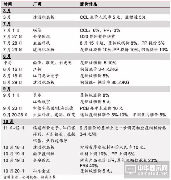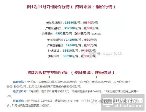 “大企業(yè)原材料采購量大,有一定的談判籌碼。但小企業(yè)沒有機會談,我們說漲多少就漲多少,否則,我們不會再供貨。這樣一來,下游小企業(yè)成本將會提高,生存難度加大,會加速并購、整合、洗牌。”一位PCB原材料廠商負責人表示,CCL覆銅板和原材材持續(xù)上漲,出現(xiàn)有價無市的狀態(tài),一些中小微企,受沖擊程度更大,2017年將面臨資金鏈斷裂風險。