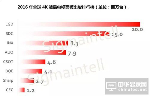 根據群智咨詢(Sigmaintell)預測,2017年全年4K液晶電視面板出貨量有望達到7800萬片,滲透率將提升到30%以上。