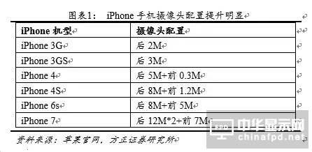 拍照一直是智能手機(jī)的重要賣點(diǎn),像素和拍照性能是換機(jī)的主驅(qū)動(dòng)力之一,以iPhone為例,后置相機(jī)從單顆2M升級(jí)到雙12M,前置相機(jī)從無(wú)到8M,其性能提升幅度遠(yuǎn)超其他任何零組件。