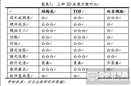 2)未來(lái)兩年前置結(jié)構(gòu)光+后置TOF有望得到推廣;