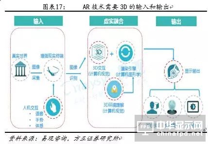 由于現(xiàn)實(shí)環(huán)境是3D的,所以AR技術(shù)為了實(shí)現(xiàn)逼真的效果,也需要產(chǎn)生3D的虛擬對(duì)象,并把3D的虛擬對(duì)象疊加顯示在現(xiàn)實(shí)的物理環(huán)境中,這就要求AR設(shè)備可以實(shí)現(xiàn)3D的輸入和輸出。