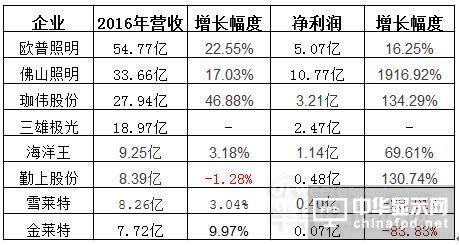 在龐大的市場需求刺激下,各大下游LED照明應用企業均處于盈利狀態。從統計數據上看,僅雪萊特及金萊特在過去一年出現盈利能力下滑;而去年剛上市的歐普照明更是以54.77億的成績單高居營收榜榜首。