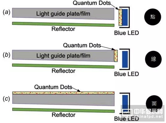 先放一下很有名的點、線、面圖(量子點在電視應用的三種型式):