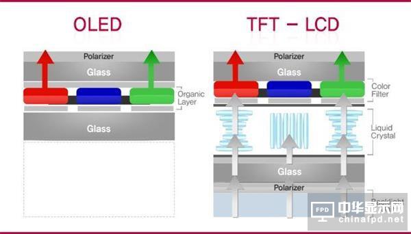 OLED與TFT-LCD結構對比(圖片來源于網絡)