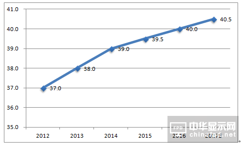 2017 年電視面板的面積將占據顯示面積需求的 70%左右,IT 類顯示面板占據 18%,可見電視面板仍是決定整個 LCD 行業供需狀況的主要因素。從目前不同高清顯示技術的市場份額來看,至少未來 3 年在 4k 領域 LCD 電 視依然是主流。2017 年電視面板面積需求達到 1.43 億平方公尺,同比 2016 年 增加 8%,主要就是由于電視面板的面積增加,在 2016 年電視面板平均尺寸首次 超過 40 寸,2017 年還將繼續增加 1.3 寸。而 2017 年預計增加的產能所提供的 面積同比增長約為 5%,在一季度淡季不淡且夏普斷貨三星的背景下,2017年的液 晶面板供應增長有限,60 寸以上的大尺寸面板將面臨持續缺貨。