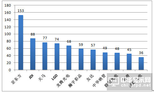 2016 年上半年全球智能手機 LCD 面板出貨量排行(百萬片)
